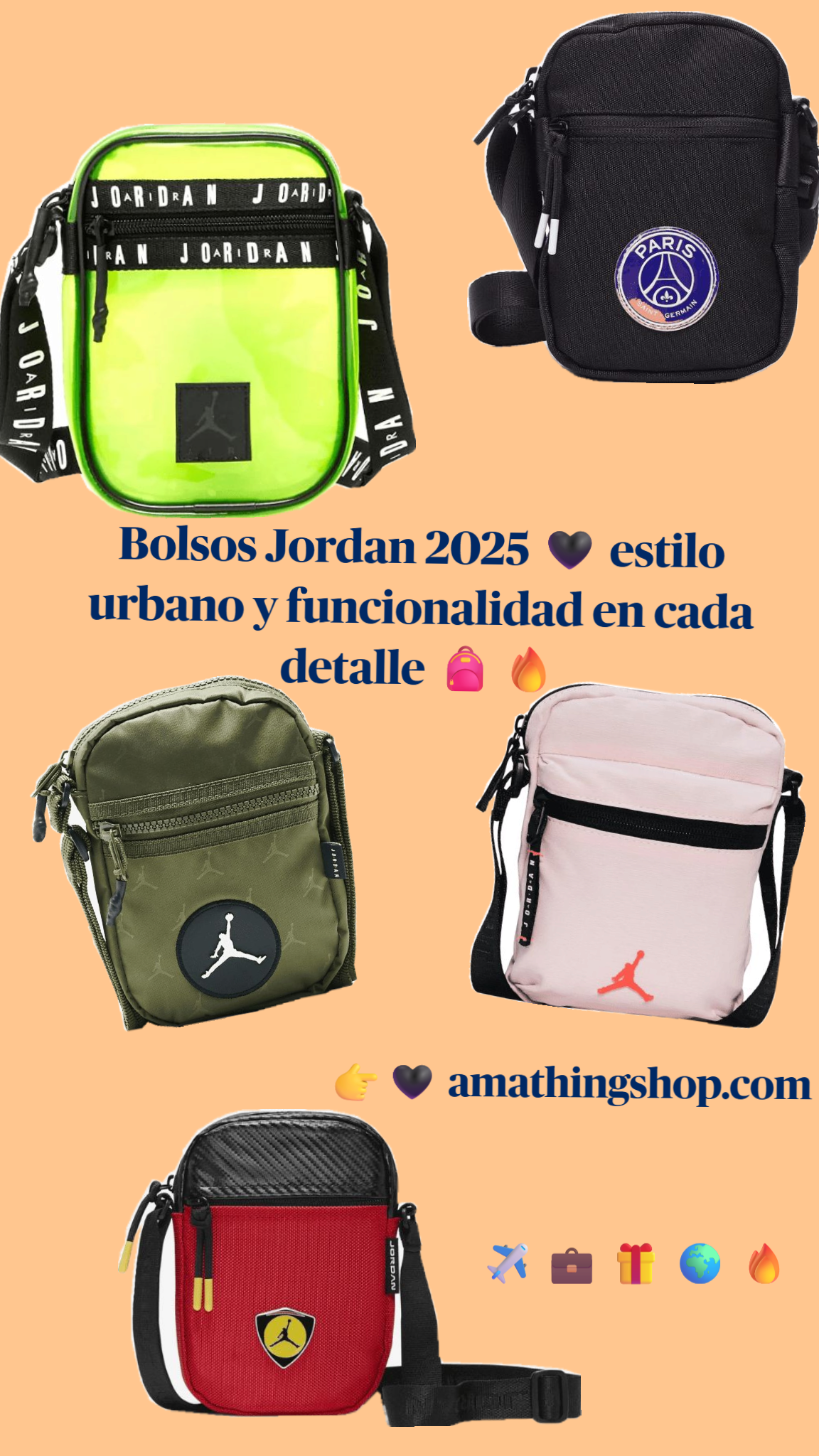 Bolso Jordan Airborne Festival Bag 9A0631-N82 Naranja mini Bandolera Unisex 13x5x18 cm Original