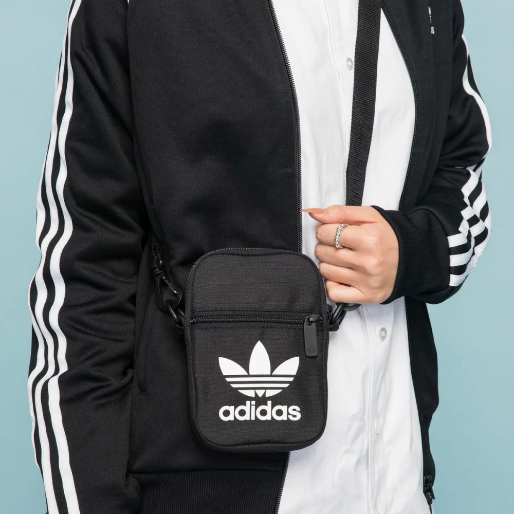 El Bolso Adidas Originals Fest Bag Tref Negra EI7411 es uno de los accesorios más buscados y vendidos de Adidas. Su diseño minimalista en negro con logo Trefoil blanco lo convierte en un complemento versátil que combina con todo.
