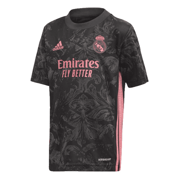 Adidas – Miniconjunto Real Madrid Niño 2020/21 FQ7478 Negra y Rosa (Tercera Equipación)