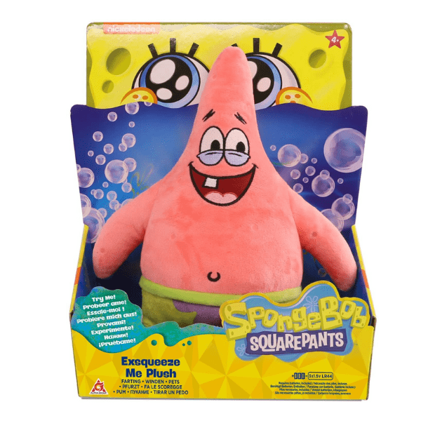 Peluche interactivo de Patricio (Bob Esponja) con sonidos de eructos reales. 28 cm de pura diversión. Ideal como regalo original para niños mayores de 4 años. Última unidad disponible. No se fabrica más.
