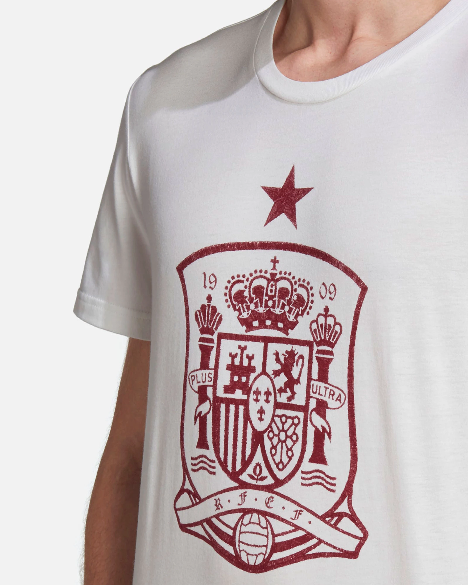 Esta camiseta oficial de la Selección Española combina la identidad del equipo con la comodidad del algodón suave. Su diseño blanco con el escudo histórico estampado en el centro refleja tradición, carácter y pasión futbolera. Perfecta para vestir en el estadio, en casa o en planes casuales.