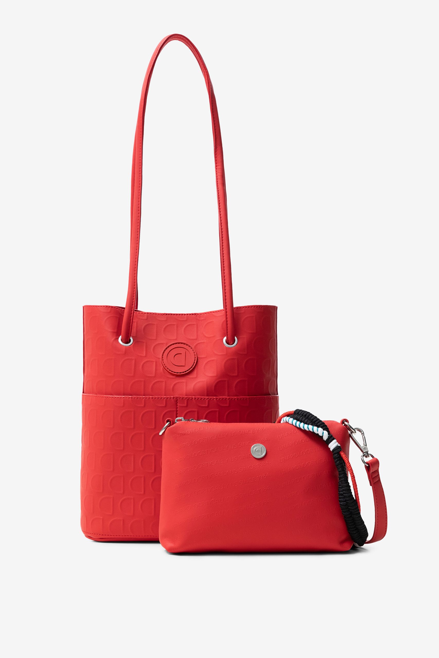 El bolso Desigual Lazarus Nerima Exception Rojo 2 en 1 combina diseño, elegancia y practicidad. Su formato doble incluye un bolso tote amplio y una bandolera extra desmontable, ideal para adaptarse a cada ocasión. Edición limitada ya descatalogada, con textura efecto piel, logomanía en relieve y el icónico logo D invertida.