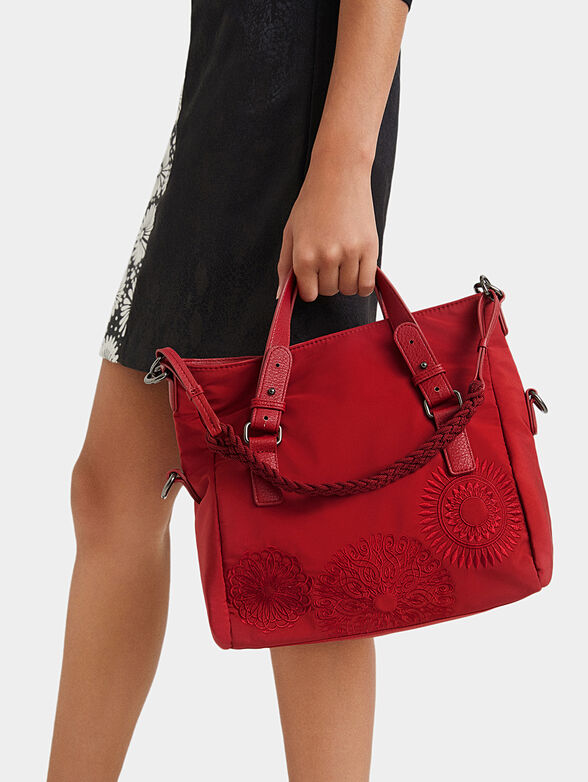 🌸 Mandalas bordados en el frontal, buscados como “bolso Desigual rojo mandalas bordados mujer”.