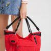• Bolso rojo llamativo y moderno que no pasa desapercibido.