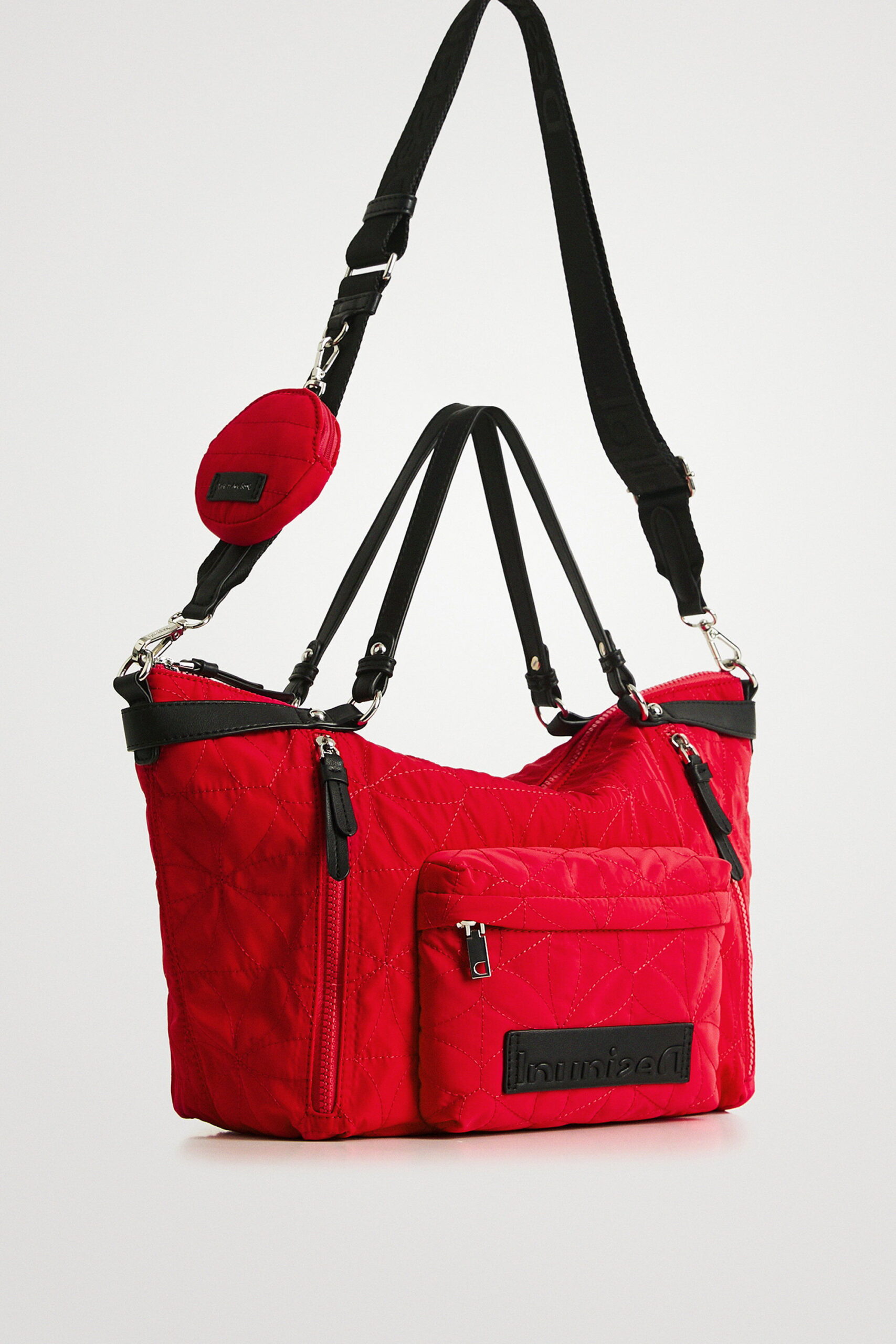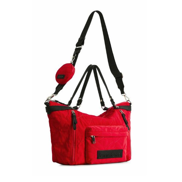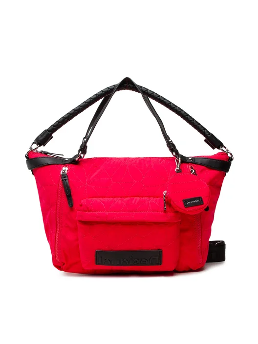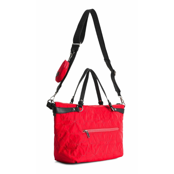 • 👜 Bolso Desigual Prisma Libia rojo grande para mujer, práctico y versátil.