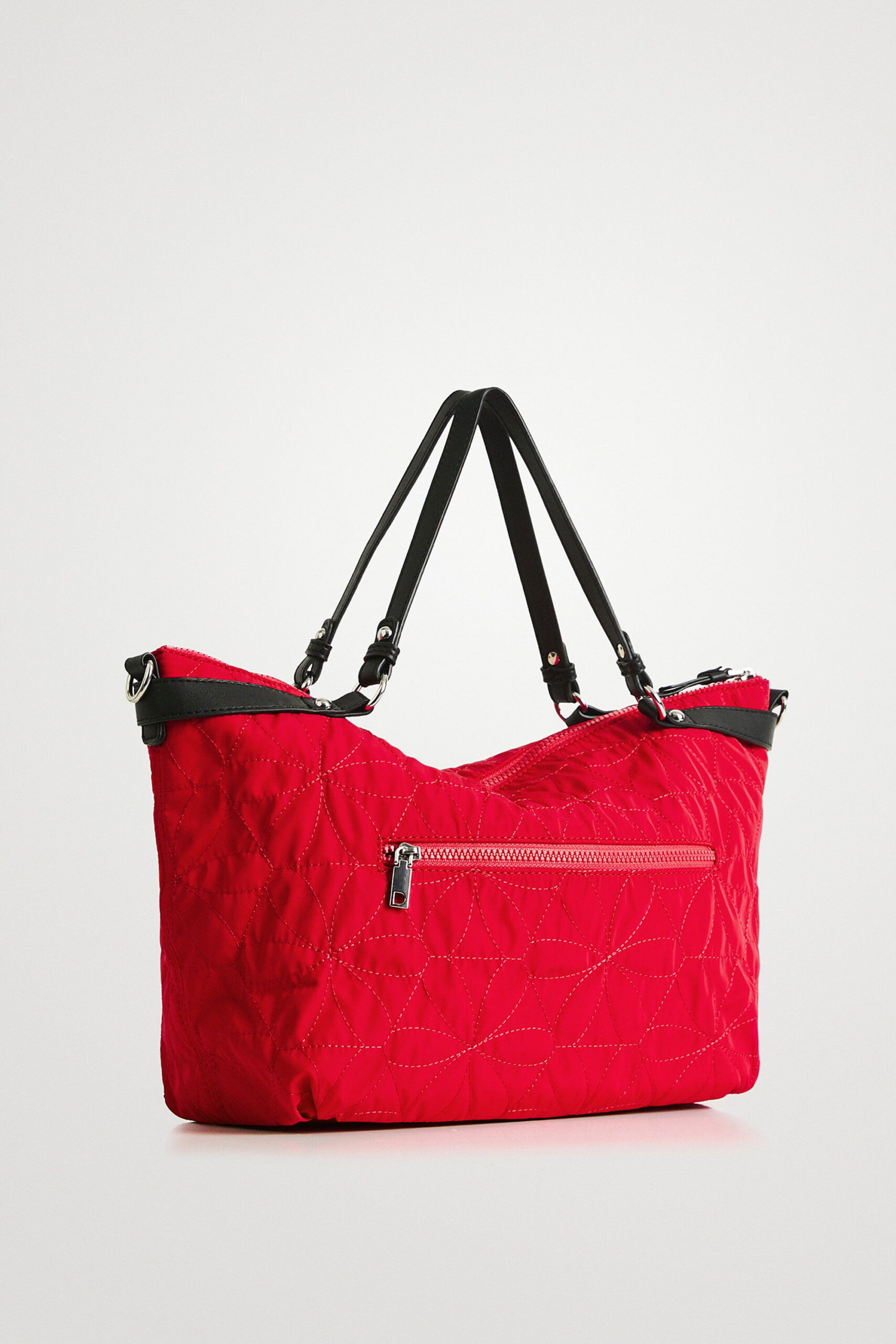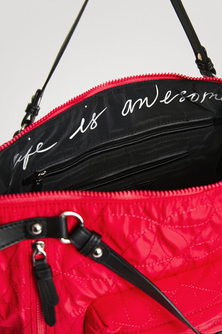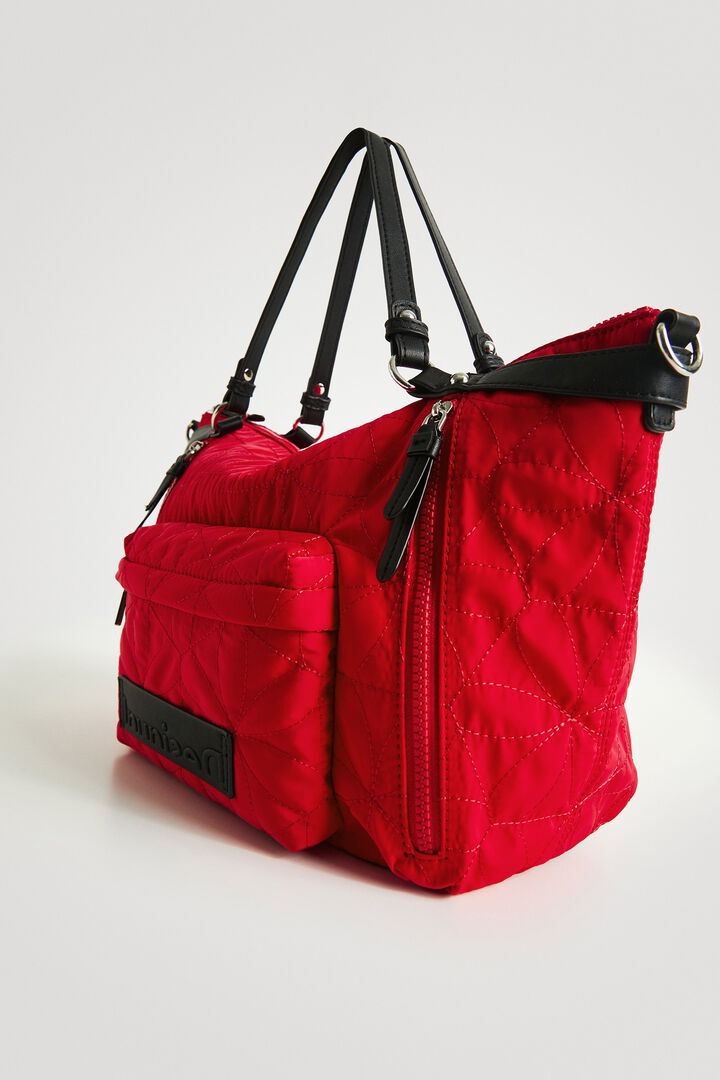 El bolso Desigual Prisma Libia rojo para mujer es una opción perfecta si buscas un bolso grande cómodo para el día a día que además tenga un diseño llamativo y diferente. Su acabado acolchado floral y su color rojo vibrante lo convierten en un bolso muy reconocible y fácil de identificar dentro de la colección Desigual.